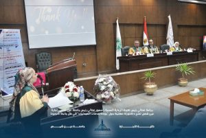 ووجه شكراً خاصاً لرئيس الجامعة على تشريفه ورعايته الدائمة لفعاليات الكلية، مرحباً في الوقت ذاته برئاسة الدكتور أحمد السبكي للجنة الحكم.