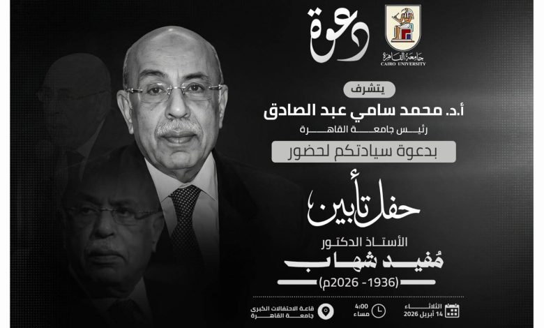 ومن المقرر أن يُقام حفل التأبين يوم الثلاثاء القادم الموافق 14 أبريل الجاري، في تمام الساعة الرابعة مساءً، بقاعة الاحتفالات الكبرى بجامعة القاهرة، مع إتاحة الفرصة لكل من عرف الدكتور مفيد شهاب أو تأثر بعلمه ومسيرته للمشاركة في إحياء ذكراه واستحضار إسهاماته العلمية والوطنية، حيث يشهد الحفل كلمات تستعرض المسيرة الحافلة للراحل، وإسهاماته البارزة في مجالات القانون والتعليم والعمل العام، إلى جانب دوره الوطني المشهود في الدفاع عن حقوق مصر القانونية، ومشاركته في العديد من ملفات السيادة الوطنية.