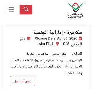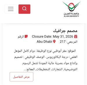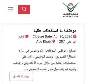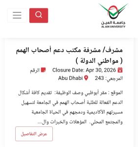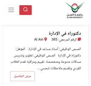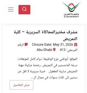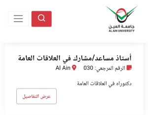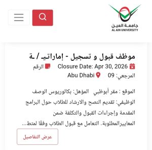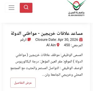 للاطلاع على التفاصيل الكاملة لوظائف جامعة العين وطرق التقدم، يرجى الدخول على الموقع الرسمي للجامعة عبر الرابط التالي: