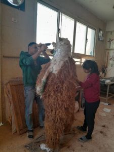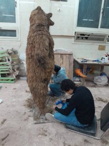 وشهدت الورشة تنفيذ عمل فني مميز بإشراف الدكتور عصمت محمد صادق الأستاذ المساعد بقسم النحت بكلية الفنون الجميلة، حيث تم تجسيد «روح الطبيعة في تمثال» من خلال تشكيل مجسم «الدب» — رمز القوة والارتباط بالطبيعة — باستخدام خامات معاد تدويرها مثل الورق وليف النخيل، في تجربة فنية تعكس التوازن بين الإبداع الفني والرسالة البيئية، وتبرز كيف يمكن تحويل المخلفات إلى أعمال تشكيلية نابضة بالحياة.