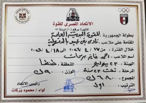 وفي ذات السياق الرياضي المشرف، حقق برنامج القانون إنجازاً كبيراً بفوز الطالب أحمد رضا محمد بالمركز الأول في بطولة الجمهورية للقوة البدنية العامة (فول باور رو) ضمن منافسات تحت 23 سنة.