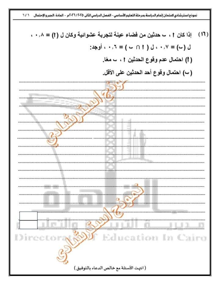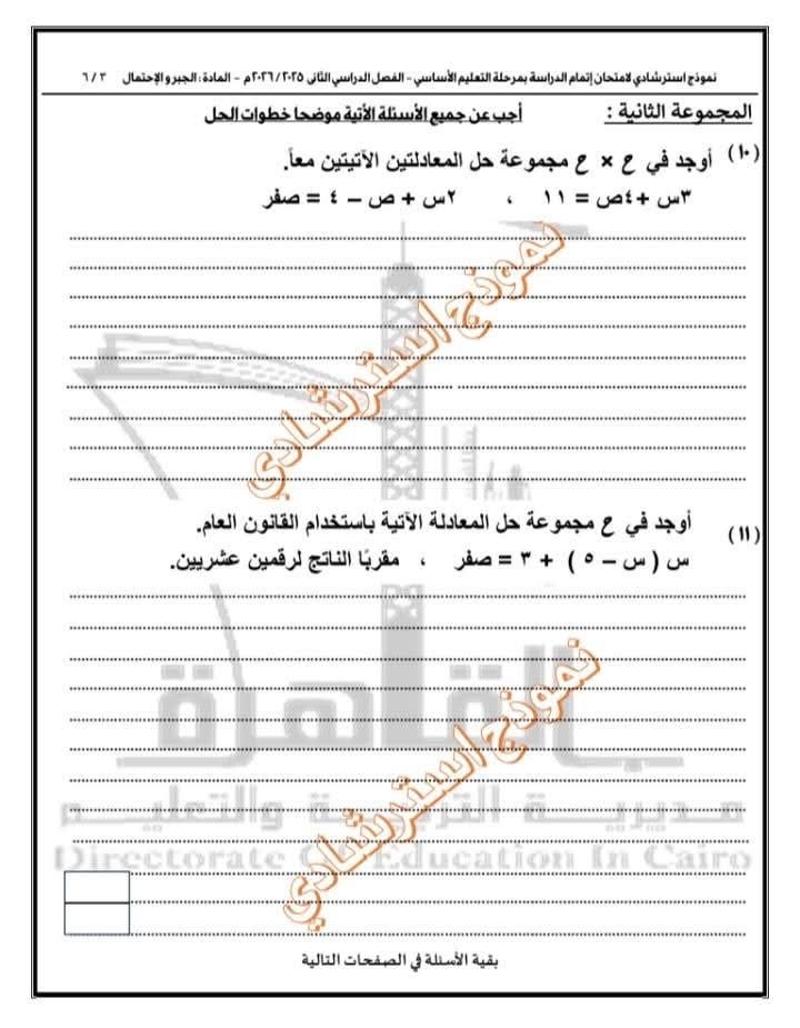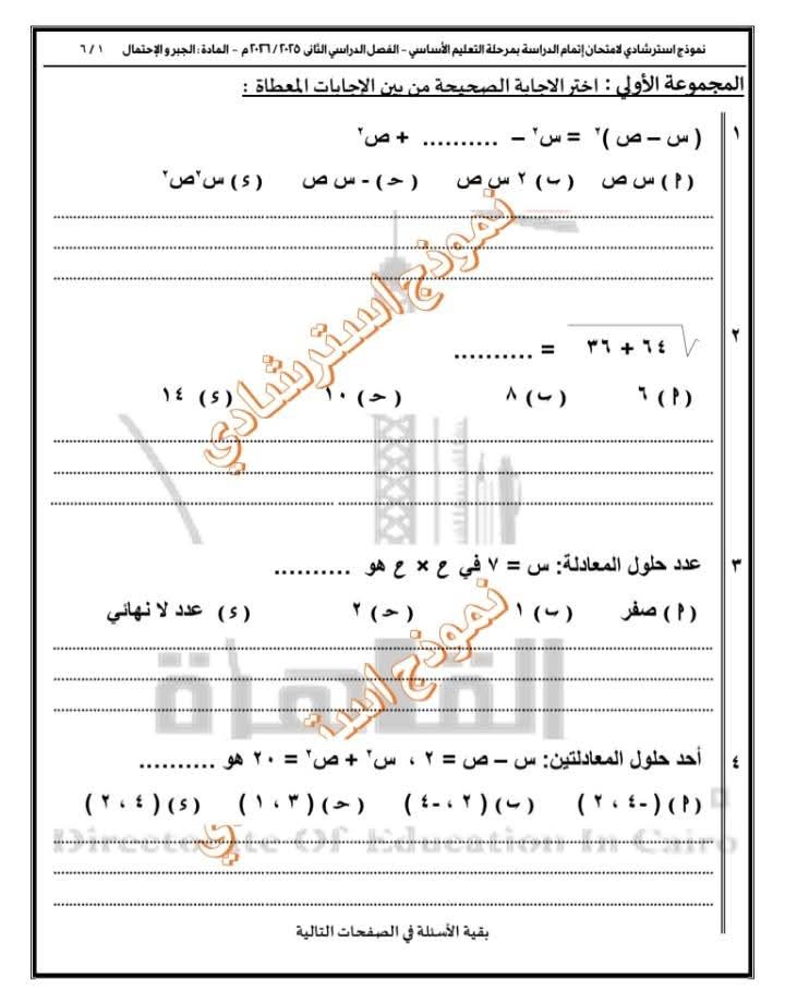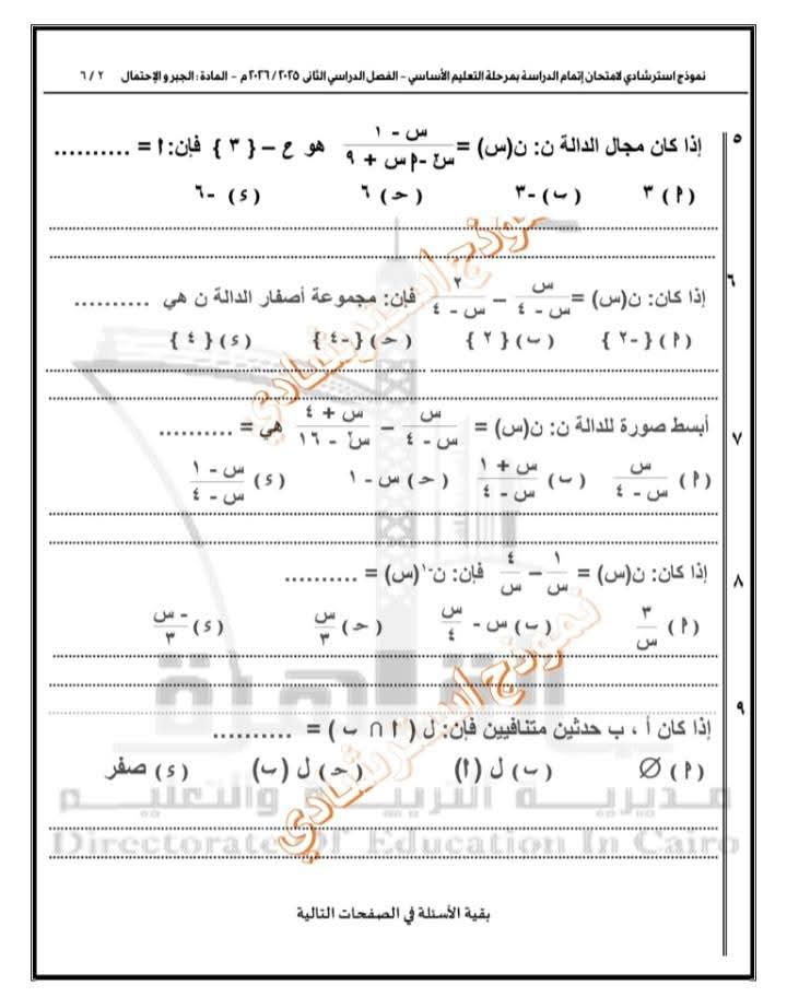 تعليم القاهرة تطرح نموذجًا استرشاديًا في الجبر والاحتمال لطلاب الإعدادية