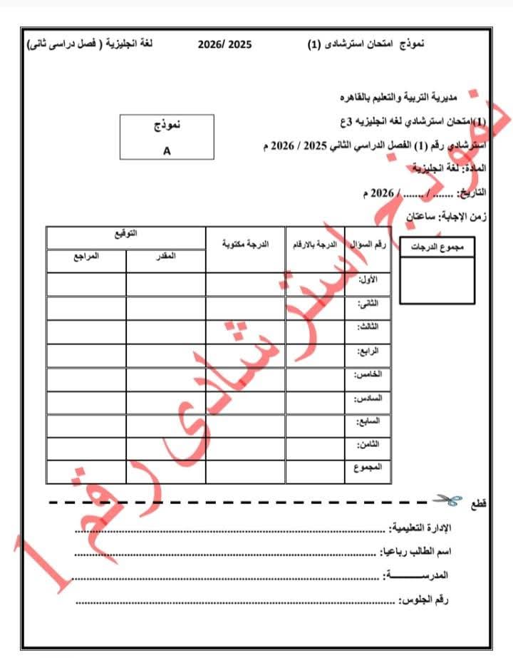 أعلنت مديرية التربية والتعليم بالقاهرة عن بدء نشر نماذج البوكليت في مادة اللغة الإنجليزية لطلاب الشهادة الإعدادية، وذلك ضمن خطة متكاملة تستهدف توفير نماذج استرشادية في مختلف المواد الدراسية خلال الفصل الدراسي الثاني للعام الدراسي ٢٠٢٦-٢٠٢٥.