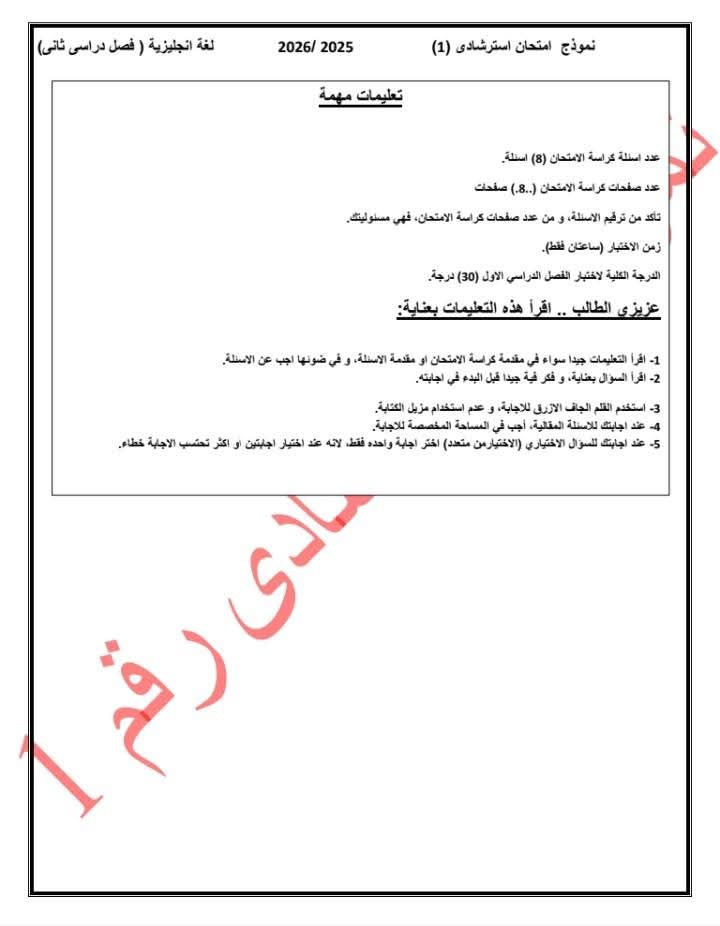 تعليم القاهرة تنشر نماذج البوكليت في مادة اللغة الإنجليزية للشهادة الإعدادية