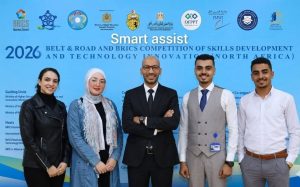 وفي إنجاز ثالث يعكس البعد الإنساني للتكنولوجيا، حصل مشروع “Smart Assistant” على المركز الثاني والميدالية الفضية في مجال الرعاية الصحية الرقمية، وهو نظام مساعد ذكي يعتمد على تقنيات الذكاء الاصطناعي، ويهدف إلى تمكين الأشخاص ذوي الإعاقة من الصم والبكم والمكفوفين من التفاعل مع المجتمع بشكل مستقل، بما يعزز مفهوم الدمج المجتمعي والرعاية الذكية، وقد قام بتنفيذ المشروع فريق مكون من طلاب الفرقة الرابعة: مهند سيد، ومحمد هلال، وكرستين نشأت من برامج متعددة.