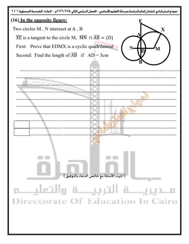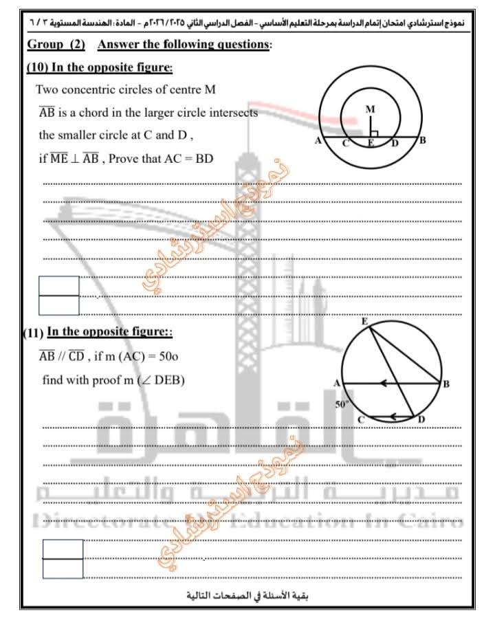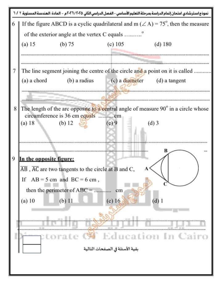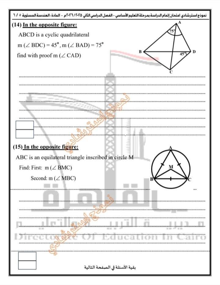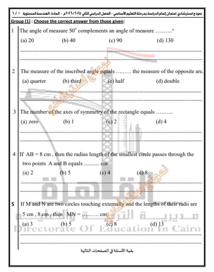 تعليم القاهرة تطرح نموذجًا استرشاديًا في مادة الهندسة المستوية Plane Geometry لطلاب الشهادة الإعدادية