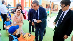 وكان في استقبال الوزير والمسئولين من الجانب الياباني، طلاب المدرسة الذين رحبوا بالوفد من خلال أنشطة تفاعلية مميزة، تضمنت تنفيذ أنشطة التعلم باللعب باستخدام الصلصال، ومحاكاة مواقف شرائية في إطار تنمية مهاراتهم الحياتية.