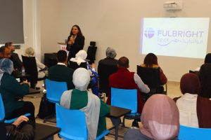 وعلى هامش الزيارة، تم عقد ندوة تعريفية بحضور عمداء الكليات ومديري البرامج وأعضاء هيئة التدريس، إلى جانب عدد من طلاب مختلف الكليات، حيث تم إستعراض برامج هيئة فولبرايت وأنواع المنح المتاحة وشروط التقديم وآليات الاستفادة منها بشكل مبسط وواضح.